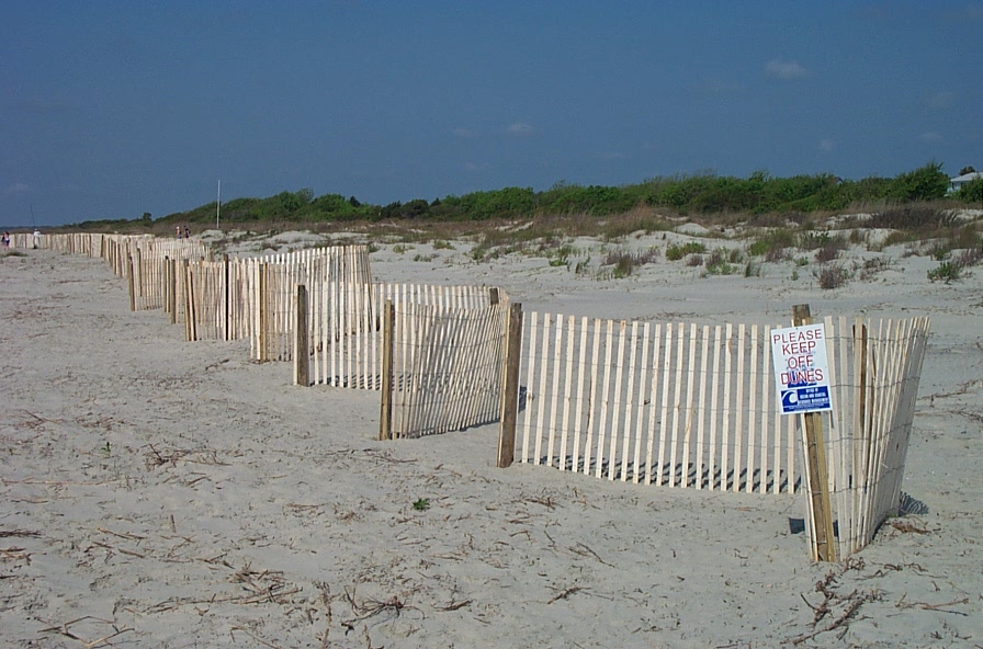 In 1992 a survey of dunes in Charleston County revealed that over half of the fencing and grasses had been damaged or destoyed. The Charleston Soil and Water Conservation District and the Natural Resources Conservation Service of the U.S. Department of Agriculture jointly initiated the Adopt-A-Dune Program whereby the volunteer citizens "adopted" specific areas of damaged dunes. They repaired damaged and replaced destroyed fencing as well as replanting vegetative covering.
